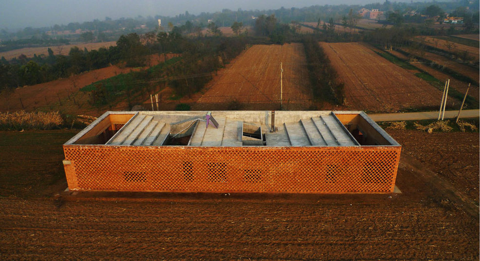 Introducing John Lin’s House for all Seasons. I call it the stadium house, because apart from the sustainable cleverness and softly lit courtyard-style rooms it possesses behind that epic breeze block façade, on top it has this awesome stadium-like roof with built-in concrete bleachers. A great place to sun bake and grow pot plants during the day and a nice space to party on at night under the stars.