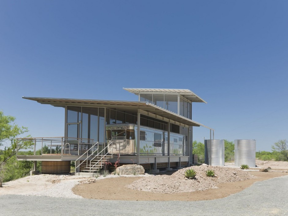 Perhaps this house is the best of both worlds: The Locomotive Ranch Trailer designed by Andrew Hinman Architecture. It was designed to house an actual vintage aluminium trailer. Though it does that in a way, it also does something else that I really love. It condenses the practical living areas into a well-designed, efficient capsule and then houses it all in an open annex. With a hot tub. There is tight, tight design at play here, courtesy of the trailer industry’s efficient design technology, but there is also a generous breakout area. With a hot tub.