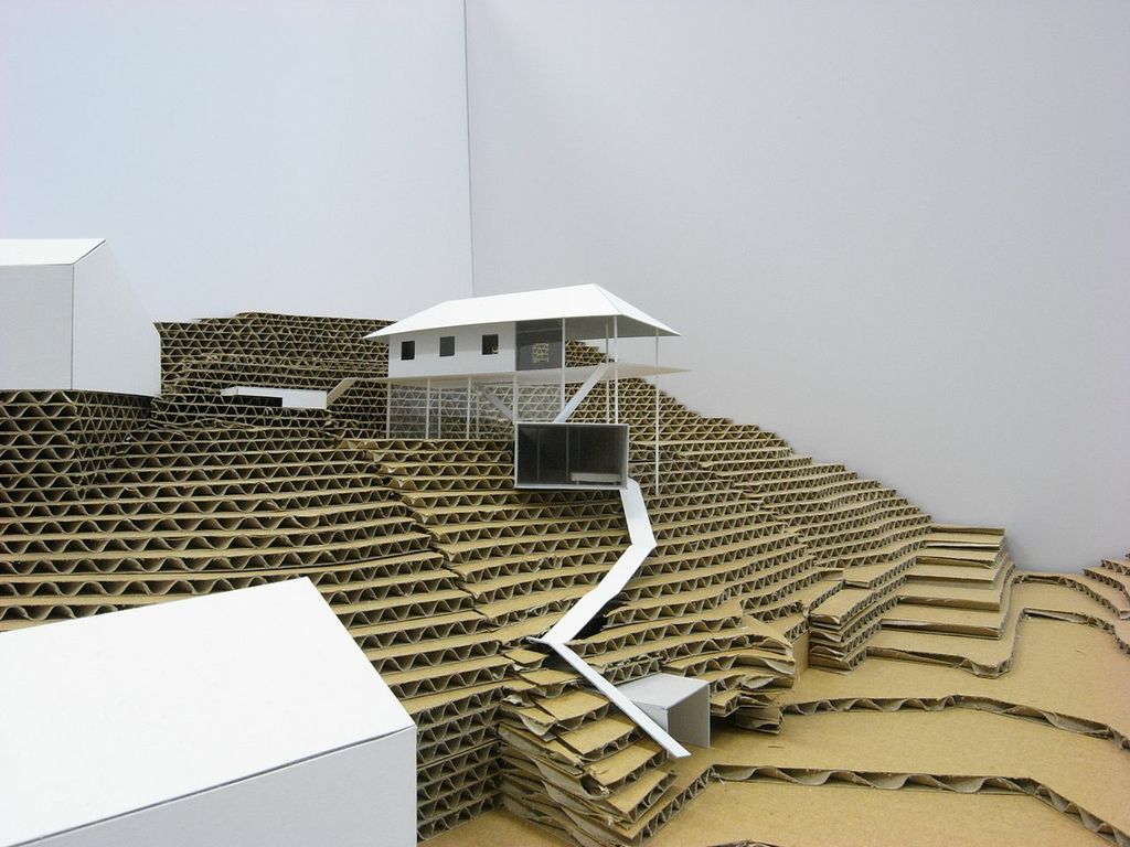 What I do remember was that Paul Hotson (Phorm Architecture and Design), Yohei Omura (also from Phorm) and I sat to receive Shimada san’s presentation around an accurate scale model of the ravine in Hamilton that the site is situated in. Yohei had built this model out of foam to assist with our imaginings. His contour model was created to help us all get a feeling for how the building might sit in the street. A giant’s eye view of how the house would appear in relation to the neighboring properties.
