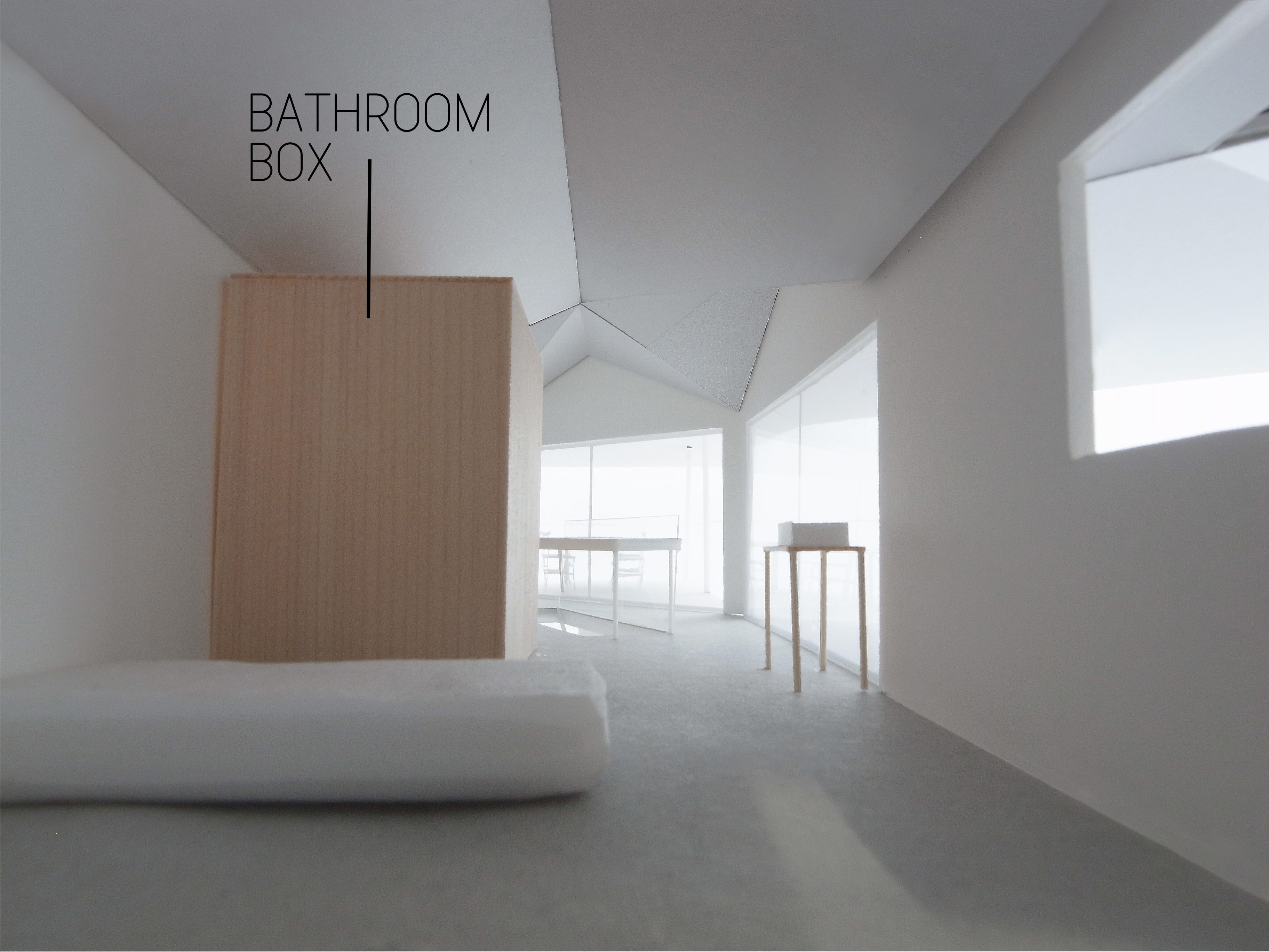 And on the top level, the guest bathroom will live within another self-contained box that doubles as a wall for the kitchen cupboards and an oven.