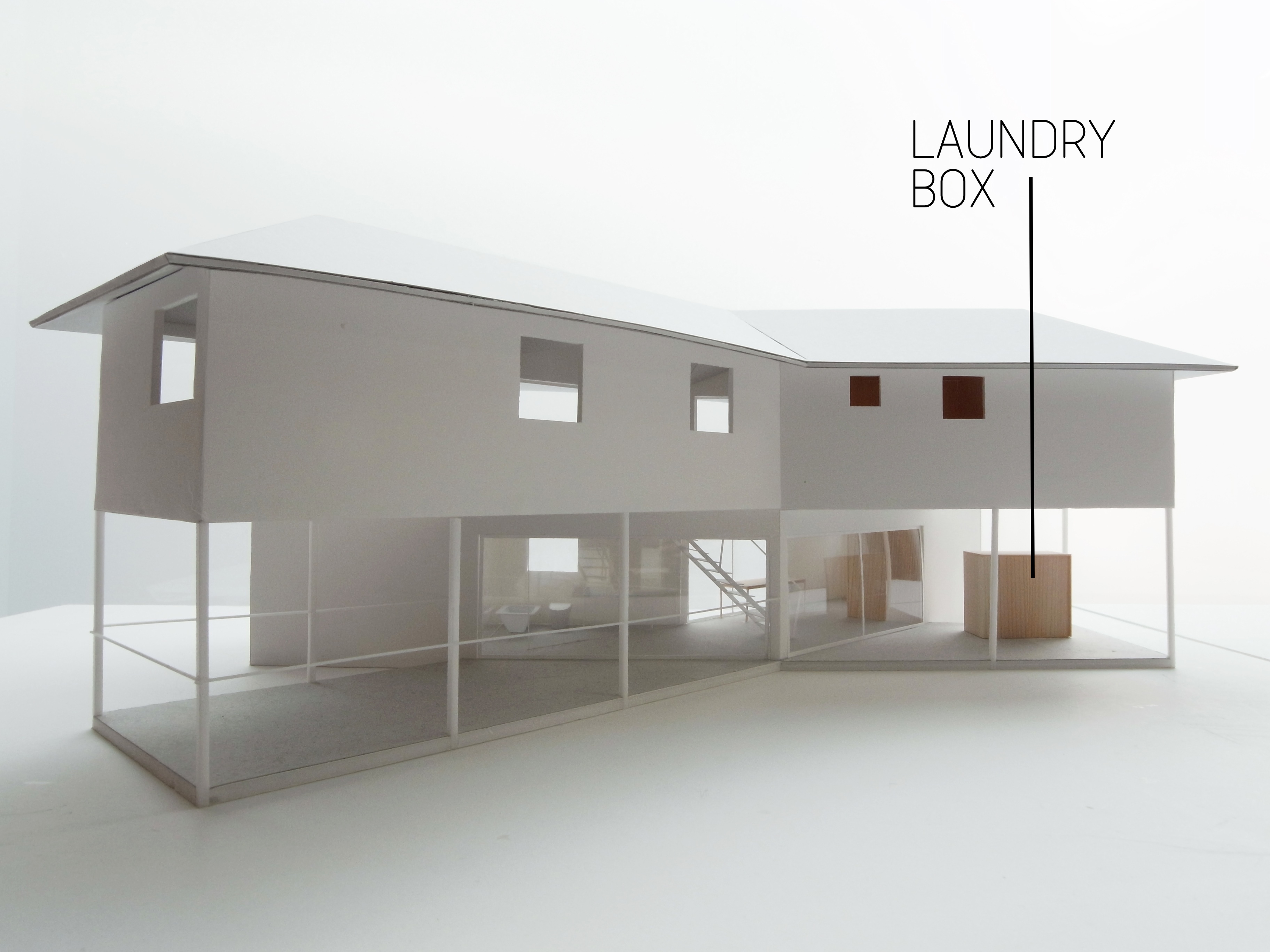 I discovered in the latest round of design development drawings for my X-House in Hamilton that Yo Shimada has been playing again with this idea of hiding functions in boxes. For example, on the lower rear deck of the X-House there is a free-standing box containing the washing machine and tubs.