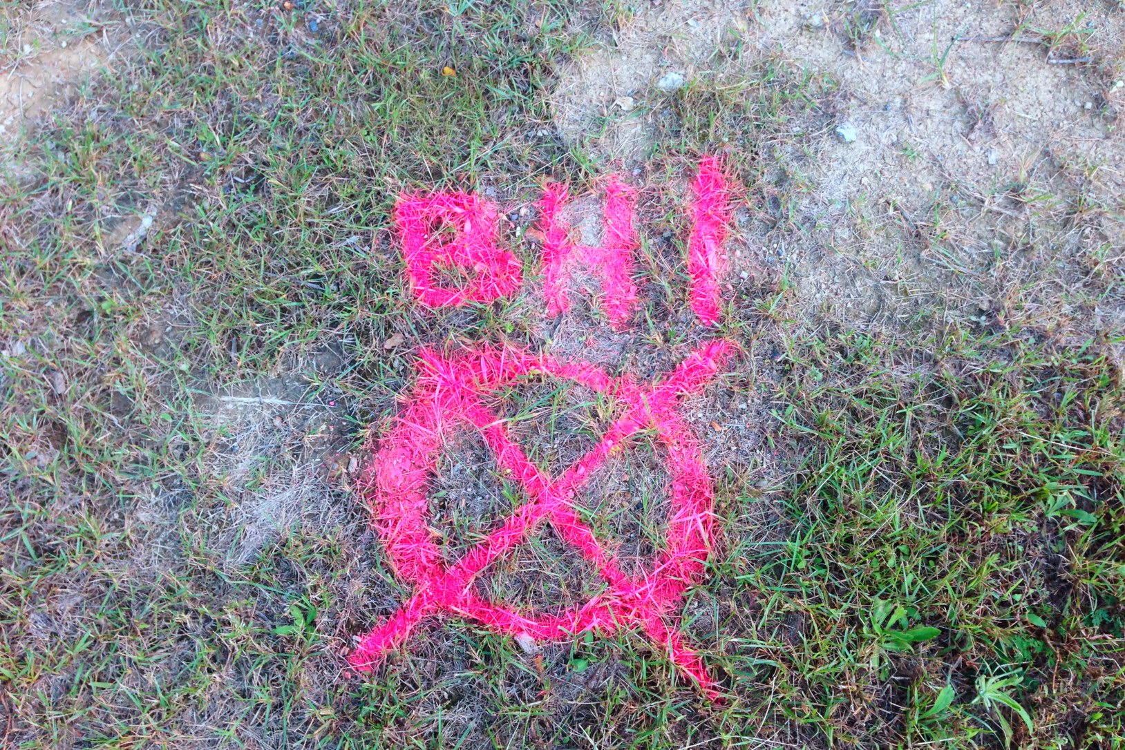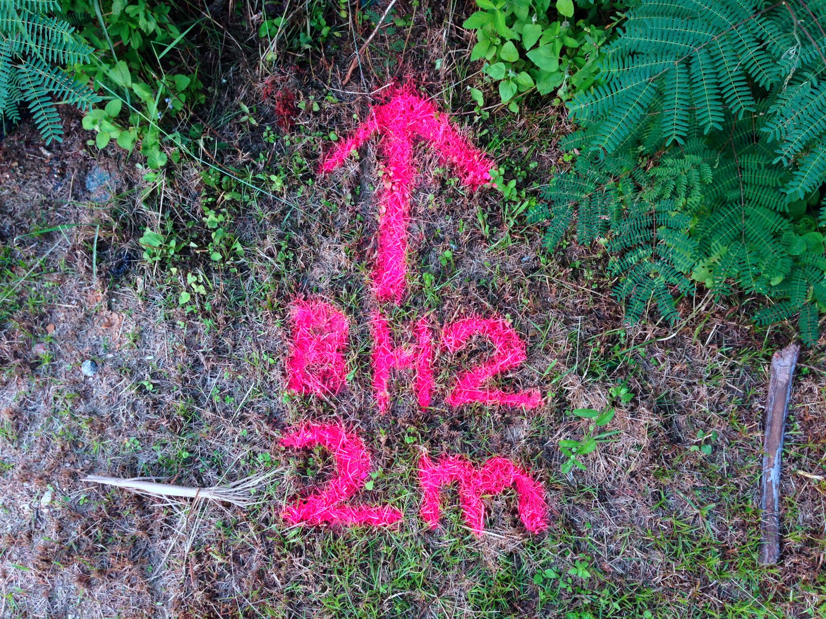 Strange markings have already appeared on the site to indicate the location of the exploratory metal spikes that will be driven into the fill through to the underlying rock to identify the true nature of the slope we’re building on.