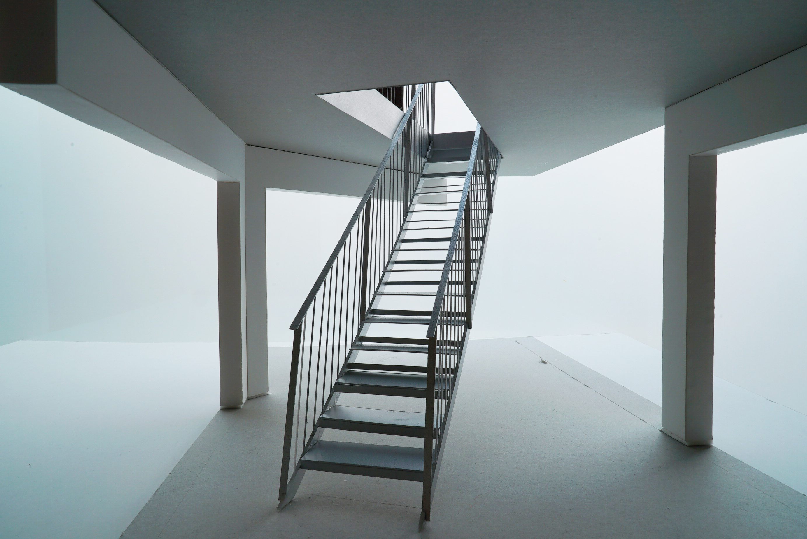 Look at these images of a model that he’s created to test the change from a stainless steel bench top in the kitchen to a timber bench top. I guess he needed to see how it would feel to walk up those stairs, so he built a set and let his fingers do the walking. Shimada san wanted to be sure. Really sure. So he created this sequence of shots.