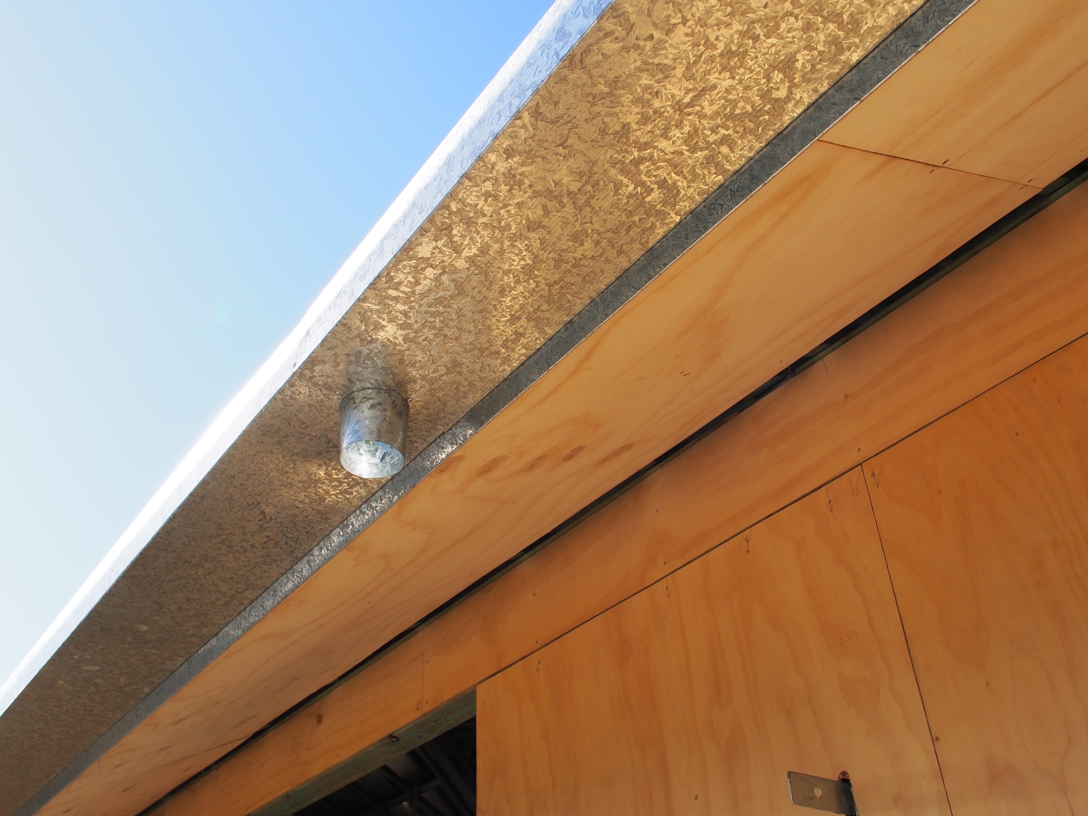 Shimada san’s gutter design was different though. It continued in line with the iron sheeting, so the lip of the gutter was essentially lower than the edge of the sheeting. To allow for the runoff to fall into the gutter and not drive straight over the edge like a rainwater Thelma and Louise, the edge of the sheeting needed to stop short at a decent distance from that lip to allow for the fall. But stopping short exposed the gaps beneath the high point in the corrugations, which is where sideways rain could get in, filling the eaves with water. So in addition to a new support mechanism for the gutter, a new flashing had to be devised that would prevent rain from blowing back under the shortened edge of the galvanised roof sheet.