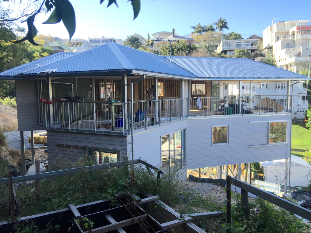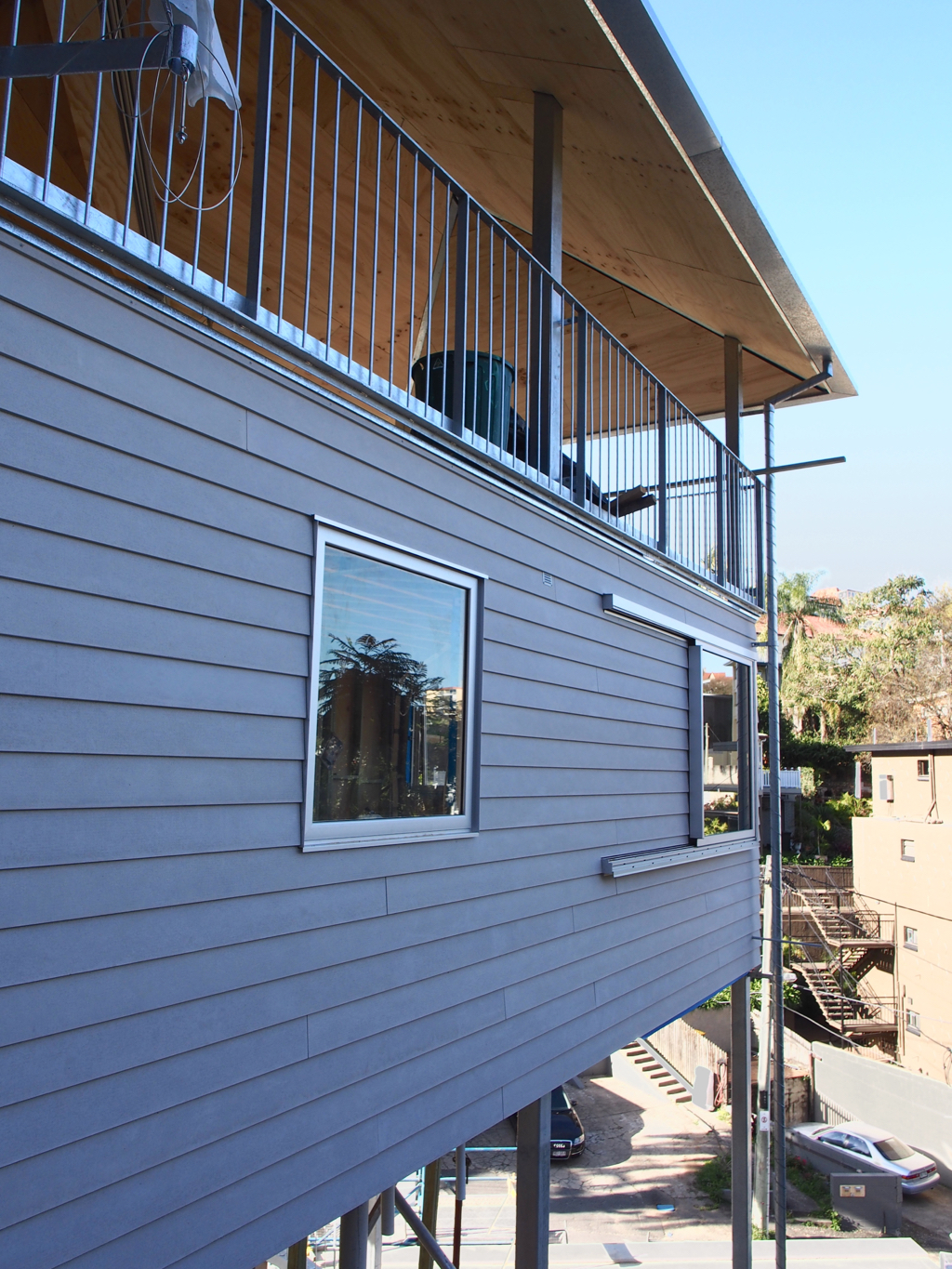 I’ve previously described all the agonising that was done over the gutters. That over-thinking had already been shown to be worth it even with the scaffolding up because the gutters, when they were installed, could be seen up close and they were beautiful. But did I count on the major effect that the down pipes would have on the way the building presented itself? I have to admit I glossed over them, nodding whenever they were mentioned just to keep the architects feeling as if I appreciated what they were doing. But I didn’t really care. I mean, a down pipe is a down pipe, right? But with the scaffolding gone, I now care a lot more. I can see that those downpipes are doing something beyond taking the water away. The way they don’t interfere with the posts is the whole idea here. They sit out just enough to create a feeling of lightness. They assist the idea, they don’t compromise it. They’re not a concession to just accept.
