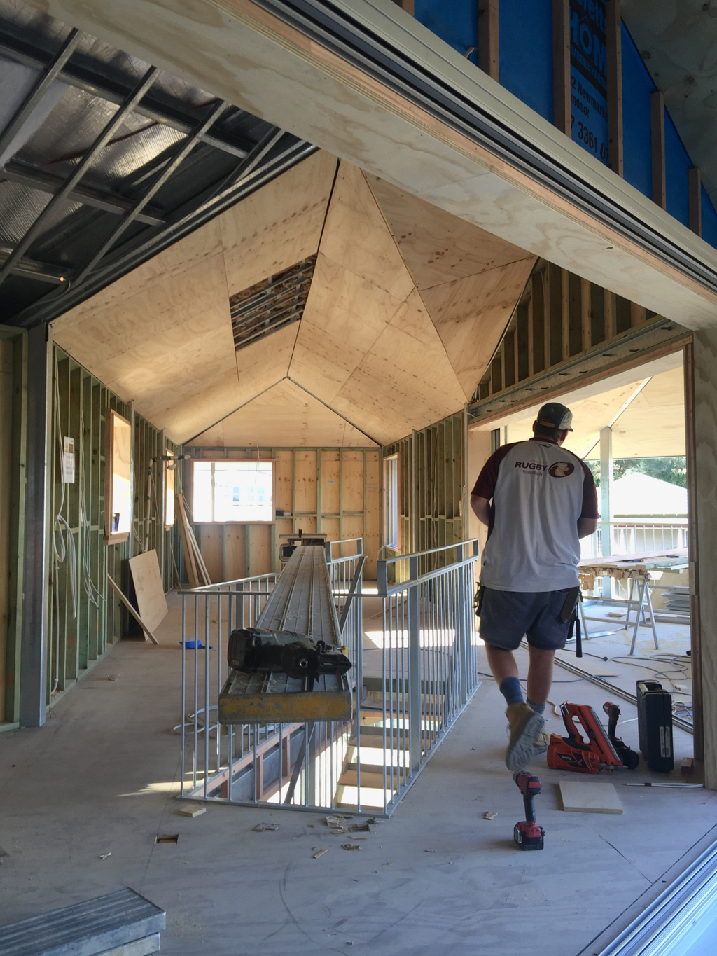 I’m looking forward now to the further refinement of these spaces as the complexity of the stud work in the walls is covered up by ply and the ceiling is lined and painted. How much will that change the feeling of the space? Again I’m unable to imagine but at least I’ll be able to watch these stages as they happen without the interference of scaffolding, with more time to adjust, and fewer moments of hello, here I am, don’t you recognise me?
