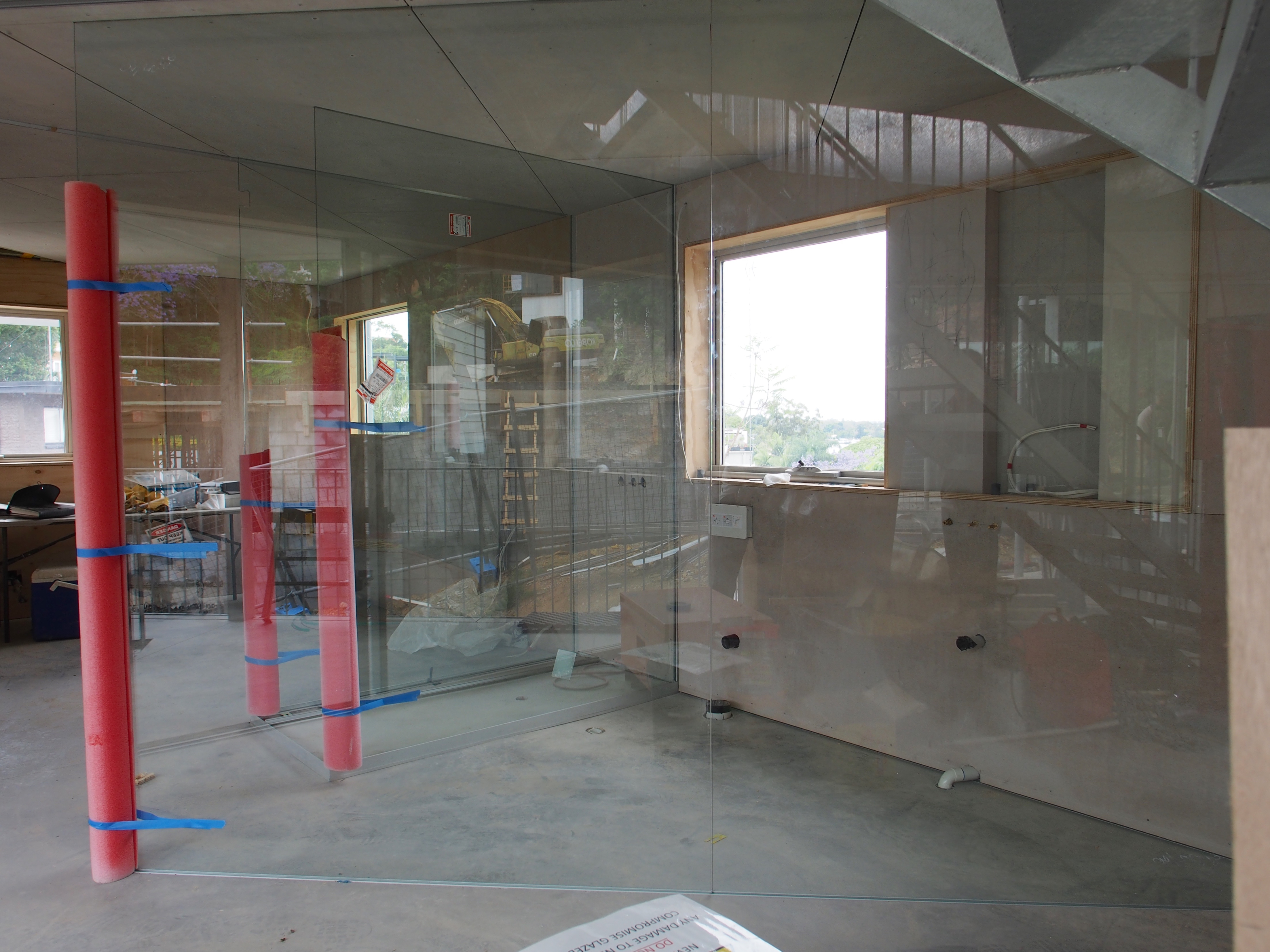 Even so, I managed to err on the side of design on two occasions when presented with the benefits of a quick, cheap fix. The first was relating to the bathroom on the lower floor. You may remember that there was a question over whether to rebate or not to rebate the glass walls. Though it caused delays and extra cost, I chose to rebate. Now that I see the glass walls installed, I know it was the correct decision. At the time though, I was unsure, so I relied on the architect’s advice. I’m glad I did.