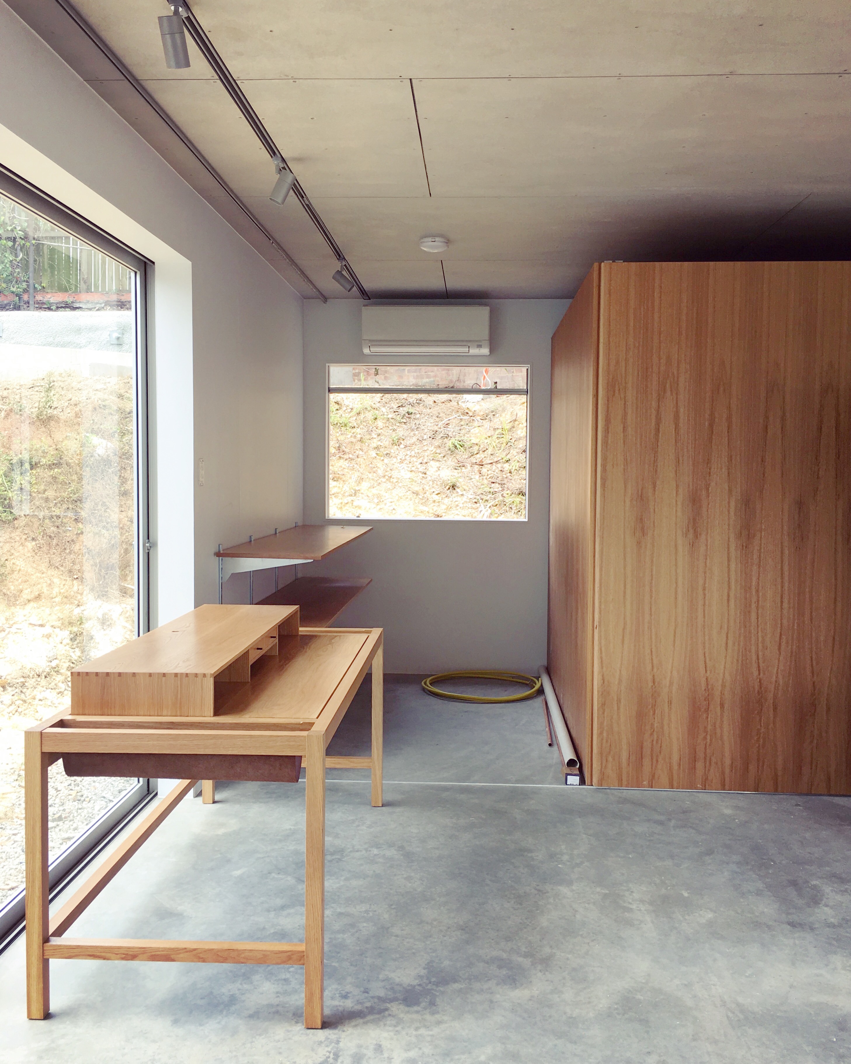 The outlook is good (although the morning sun is brutal and will have to be dealt with via an “after market” blind). Mainly though, it’s the connection I feel with the entire house from this seat that really works for me. I see now what Shimada san has done, and why he fought to have this desk here. I guess this is how I’ll go about acknowledging the design and the build, piece by piece, over time. It’s the start of a long process that could, I guess, take years as I discover new things about this house.